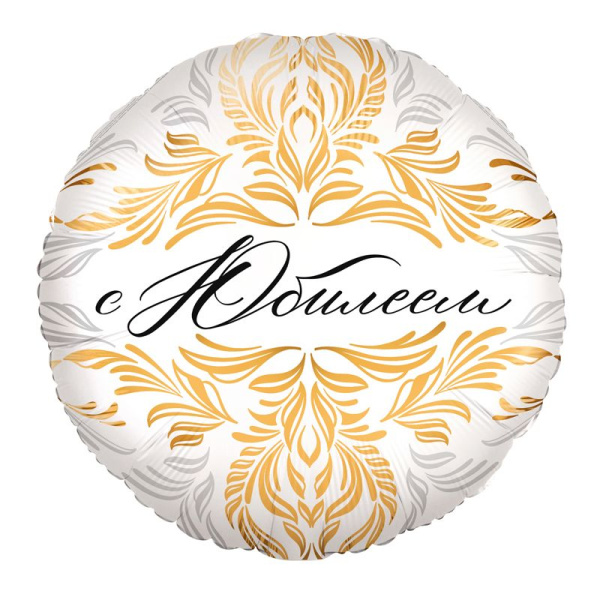 Шар (18''/46 см) Круг, С Юбилеем, Белый, 1 шт.