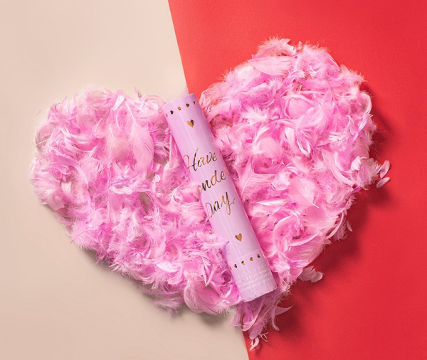 Пневмохлопушка, Конфетти перья, Розовый, 28 см, 1 шт.