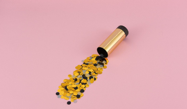 Пневмохлопушка, Золото, Конфетти металлик, 10 см, 1 шт.
